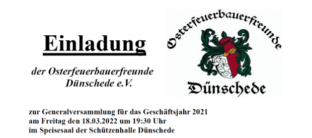 Einladung zur Generalversammlung der Osterfeuerbauerfreunde Dünschede am 18.03.2022