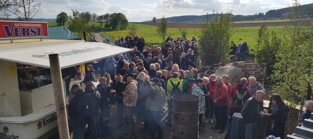 Ein wichtiger Pfeiler dieser Gemeinschaft ist die Geselligkeit. Dabei mag es der „gemeine“ Osterfeuerbauerfreund eher rustikal. Zentrum dieser Geselligkeit ist der mittlerweile legendäre Bauwagen direkt am Osterfeuerplatz oberhalb der Schützenhalle. Dazu eine Feuertonne, etwas Leckeres vom Grill und ein kühles Getränk – dann ist die Welt in Ordnung.